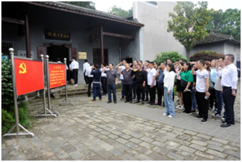 在陳賡同志生平業(yè)績陳列室,大家認真學(xué)習(xí)了解陳賡同志生平事跡、革命歷程和光輝一生,感受了其偉大的人格魅力和堅定的革命信仰,大家內(nèi)心都充滿了敬仰之情。參觀結(jié)束后,黨支部書記帶領(lǐng)全體黨員在陳賡故居門前重溫入黨誓詞,大家用高昂、奮進而又莊嚴的誓詞表達了對黨的忠誠和熱愛。