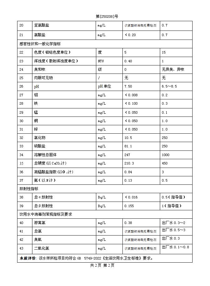 2025年2月三水廠出廠水水質(zhì)公告